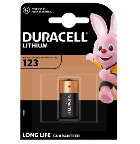 Duracell CR123 ličio baterija suteikia 3V energiją ir yra tinkama kameroms, žibintuvėliams bei saugumo įrenginiams. Pakuotėje yra viena baterija, kurios matmenys yra maždaug 34.5 mm × 17 mm, o svoris apie 21 g.
