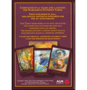 Pabaigtas per 21 metus ir tapęs legenda: Margarete Petersen Tarot. Šis specialus leidimas pirmą kartą išleistas 2001 m., minint 20 metų jubiliejų. Ši taro kaladė atrodo kaip niekad šiuolaikiškai: šių dienų populiariąsias tendencijas menininkas užfiksavo prieš kelis dešimtmečius. Vaizdai stipriai veikia mūsų pasąmonę; stebuklinga, moteriška, įkvepianti