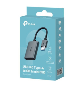 TP-Link UA430 kortelių skaitytuvas palaiko SD ir MicroSD (TransFlash) atminties korteles ir jungiasi per USB 3.2 Gen 1 Type-C. Jis suderinamas su Linux, Android, iOS, Mac ir Windows operacinėmis sistemomis.