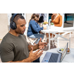 Poly Voyager Surround 80 UC yra Microsoft Teams Sertifikuotos USB-C ausinės su binaurine konstrukcija ir integruota baterija, kuri suteikia iki 21 valandos pokalbių laiko. Jos turi Bluetooth 5.3 ryšį, nuimamą kabelį ir jutiklinį garso valdymą, taip pat 10 integruotų mikrofonų aiškiam garsui.