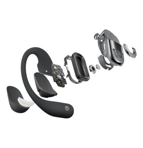 Belaidės ausinės su ausų kabliukais, skirtos skambinimui, muzikai ir sportui, su atviru ausų stiliumi. Jos turi USB Type-C įkrovimą, IP55 apsaugą nuo vandens ir iki 48 valandų atkūrimo laiką su įkrovimo dėklu.