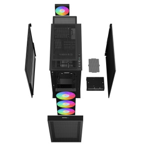DeepCool CH560 Midi Tower pasižymi juodu dizainu su grūdinto stiklo panelėmis ir daugiaspalviu apšvietimu. Jis palaiko įvairių dydžių motinines plokštes, turi kelias saugojimo vietas ir apima efektyvias aušinimo galimybes su palaikymu keliems ventiliatoriams ir radiatoriams.