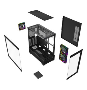Gembird Fornax X550 žaidimų korpusas palaiko kelias pagrindinių plokščių dydžių formas, įskaitant ATX ir E-ATX, ir turi šoninį langą matomumui. Jame yra 2x USB 3.2, 1x USB Type-C prievadai, taip pat gausybė aušinimo galimybių su palaikymu keliems ventiliatoriams.