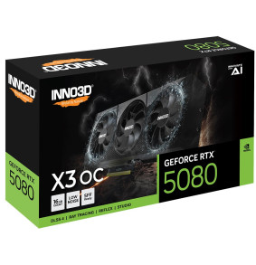 GeForce RTX 5080 X3 OS turi 16 GB GDDR7 atminties ir didžiausią dažnį 2640 MHz. Jis palaiko iki keturių ekranų ir turi tris ventiliatorius aktyviam aušinimui.