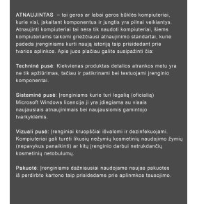 Sistemos pusė: Prietaisams, turintiems originalią Microsoft Windows licenciją, ji įdiegta su visais naujausiais atnaujinimais ir naujausiais gamintojo tvarkyklėmis.