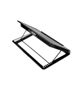 Įspėjimai | Laikykite produktą toliau nuo šilumos šaltinių ir atviros ugnies. Užtikrinkite, kad stovas būtų stabilus ir neturėtų neigiamos įtakos nešiojamojo kompiuterio aušinimui. Neapkraukite stovo, nesudėdami ant jo per sunkių daiktų. |