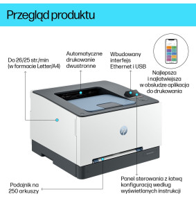 Spausdina spalvotai ir juodai greičiu 25 puslapiai per minutę su maksimaliu 600 x 600 DPI raiška. Palaiko dvipusį spausdinimą ir turi mėnesinį darbo ciklą iki 40,000 puslapių. Puikiai tinka mažoms ir vidutinėms įmonėms, rekomenduojamas mėnesinis darbo ciklas 150 - 2500 puslapių.